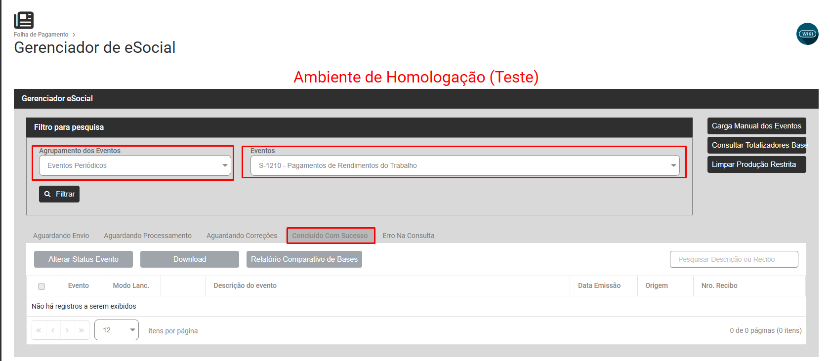 Filtre por Eventos Periódicos S1210 - Concluído com Sucesso