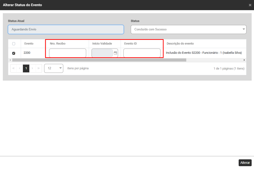 - Em caso positivo, verifique se o numero do recibo que consta no eSocial é o mesmo número que consta no Gerencia eSocial, se não for, inclua o número do recibo manualmente.