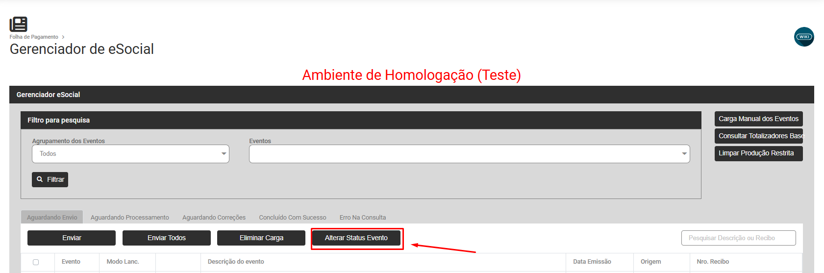 Após o preenchimento acesse novamente o menu Folha de Pagamento>Movimentação>Gerencia eSocial.