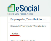 Acesse o Portal do eSocial no menu Empregador>Tabelas