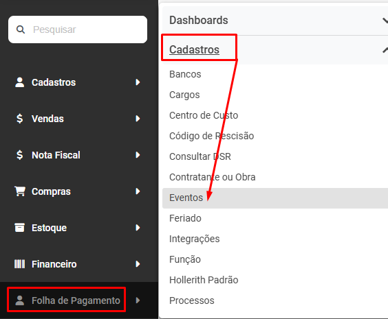 Na geração dos recibos não poderá haver nenhum evento que na aba Informações eSocial esteja com incidência de contribuições previdenciárias seja igual a [31,32].