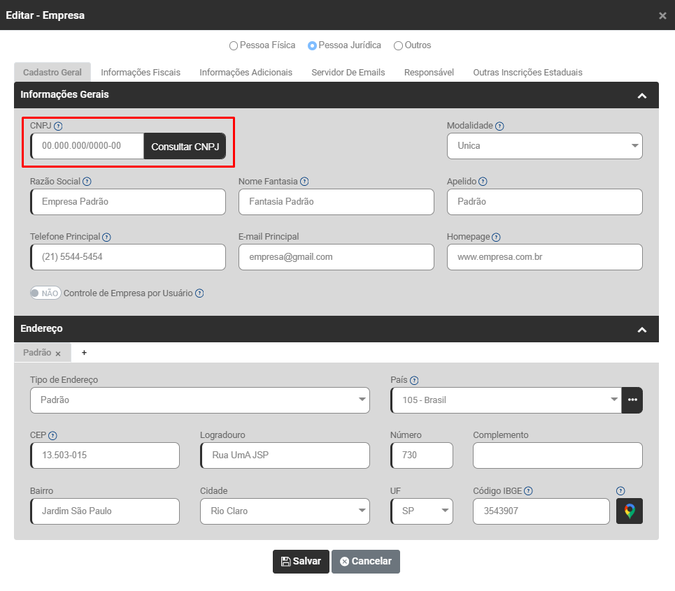 Correção: Acesse Lista de Empresas e edite a Empresa que apresentou a inconsistência