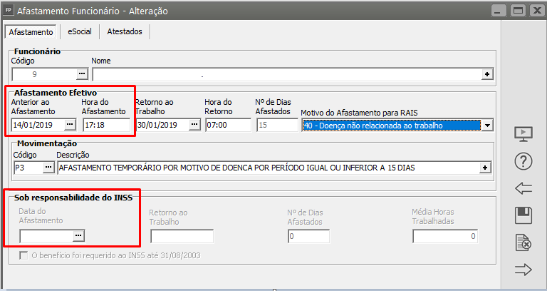 Ação Sugerida: Deve ser uma data igual ou posterior a data do afastamento que está sendo alterado e menor que a data de término do afastamento, caso esta já tenha sido informada.