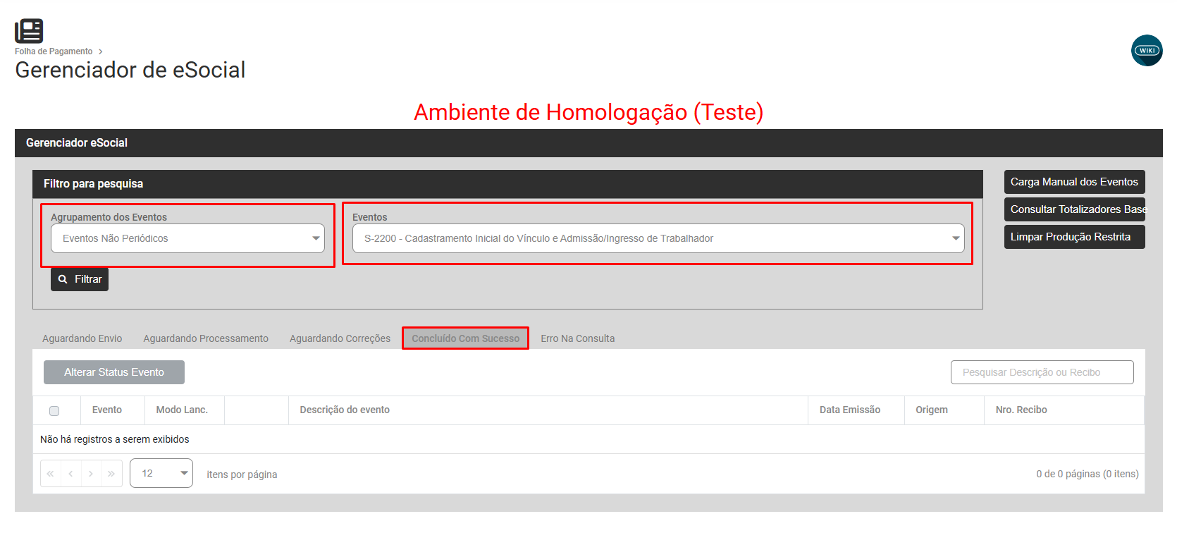 Filtre por Eventos Não Periódicos S2200 do trabalhador e verifique se o mesmo foi concluído com sucesso