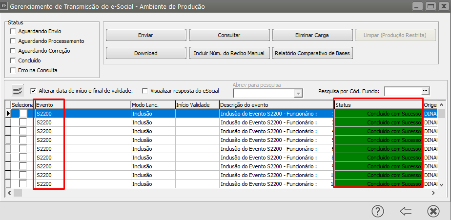 CorreçãCorreção: Acesse o Gerenciamento de TransmissãTransmissão do eSocial e pesquise por Eventos o PerióPeriódicos S2200, clique na seta AvançAvança e verifique se o evento S2200 do trabalhador foi concluíconcluído com sucesso