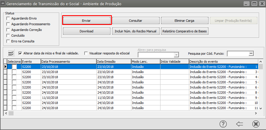 Correção: Acesse o Gerenciamento de Transmissão do eSocial, pesquise por Eventos Não Periódicos S2200 e envie o evento do trabalhador para o Portal do eSocial