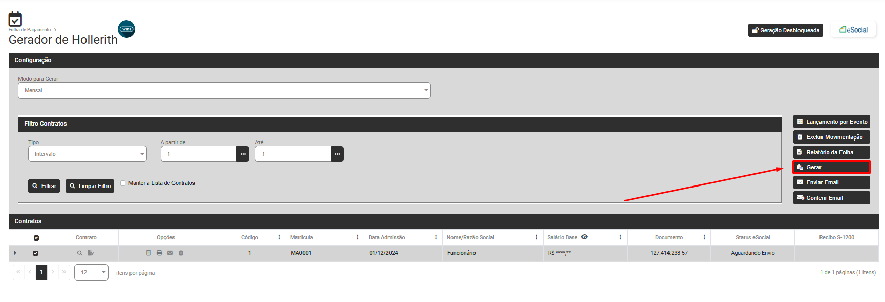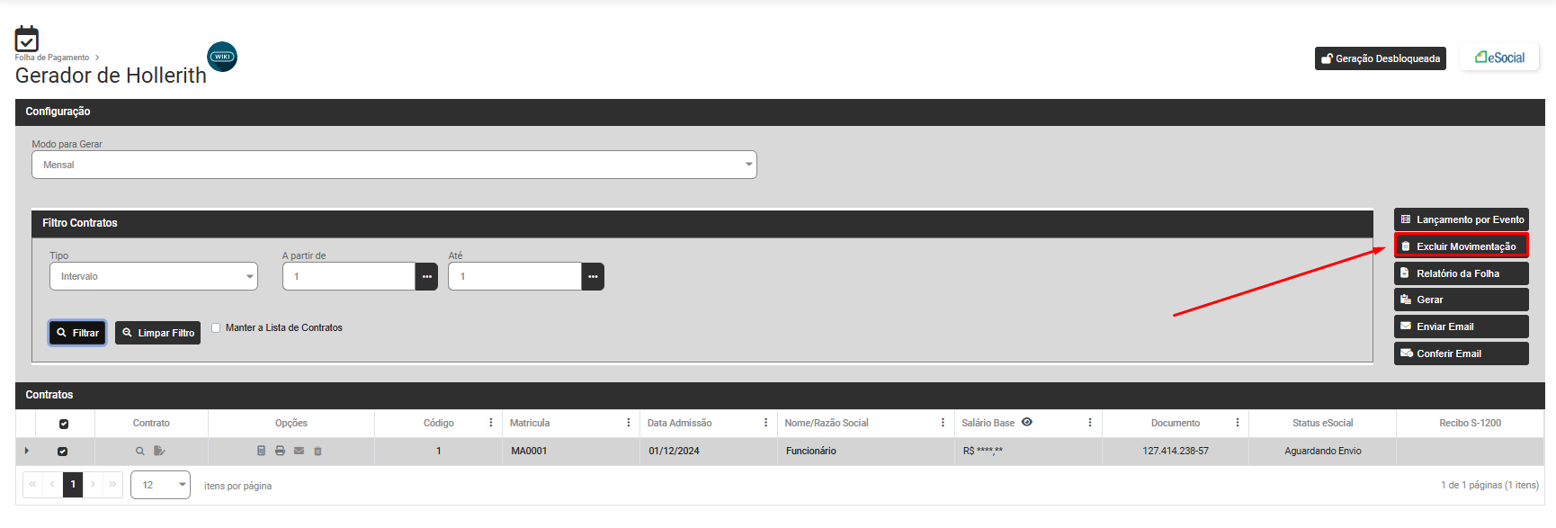 Caso exista informação com inconsistência, exclua o hollerith e faça novamente a geração, através do menu Folha de Pagamento>Movimentação>Gerar Hollerith