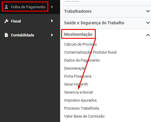 Correção: Acesse o menu Folha de Pagamento>Movimentos>Gerencia eSocial