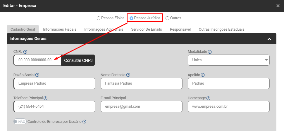 Correção: Acesse a Lista de Empresas e edite a Empresa que apresentou a inconsistência