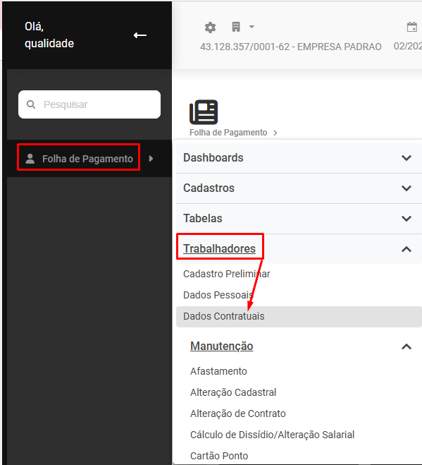 Edite os Dados Contratuais do Trabalhador que apresentou a inconsistência