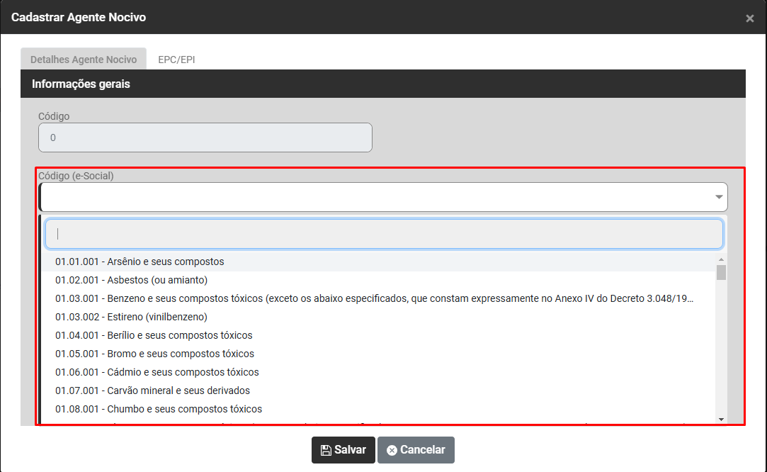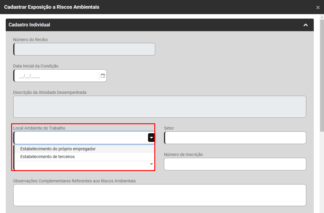 Descrição: “O fator de risco deve existir na tabela de ambientes de trabalho do empregador vinculado ao mesmo