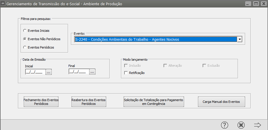 Em caso afirmativo, copie o recibo do mesmo e em seguida acesse o Gerenciamento de Transmissão do eSocial, pesquise Por Eventos Não Periódicos - S2240 e clique na seta Avança