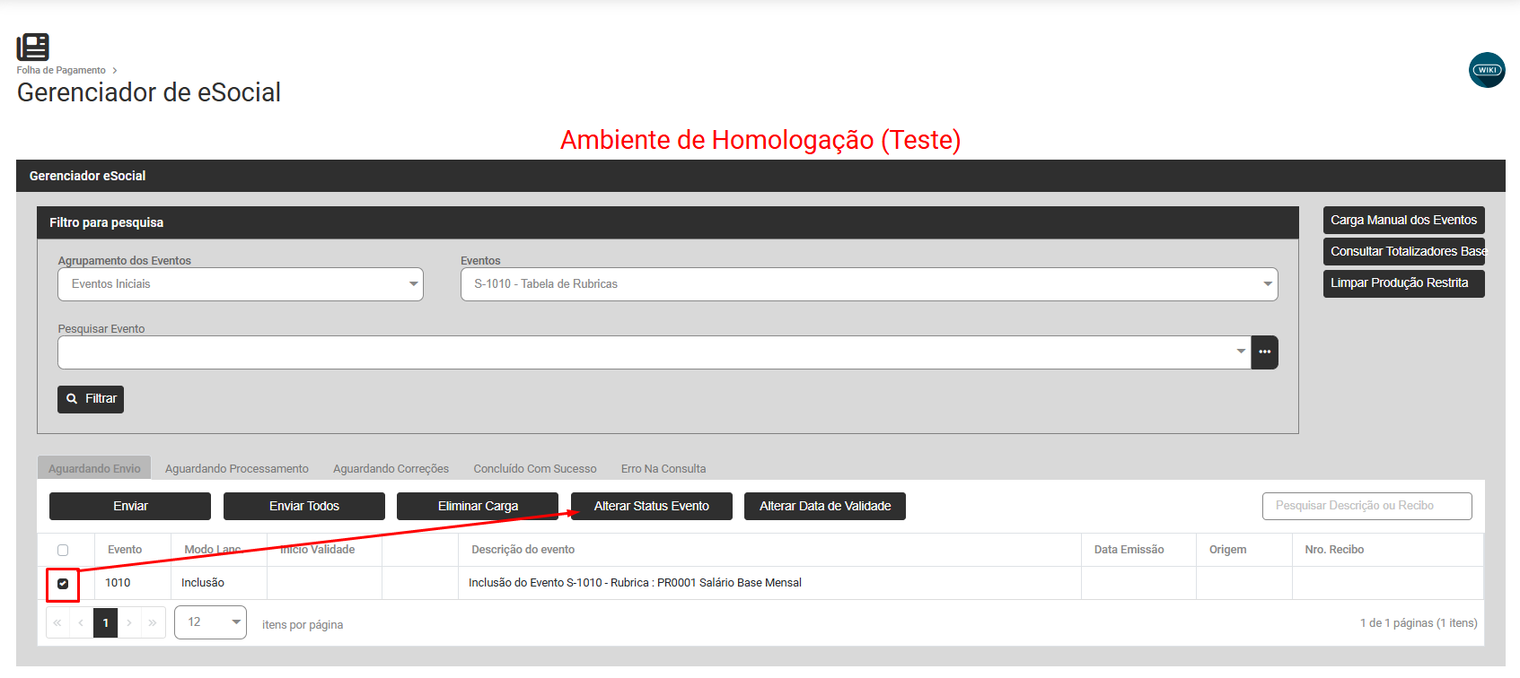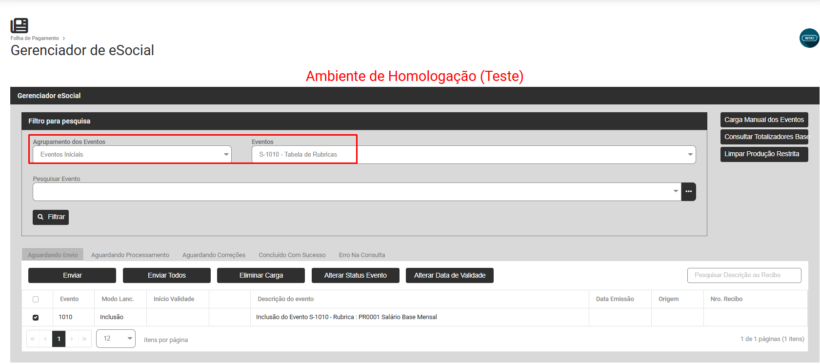 Acesse o Módulo Folha de Pagamento>Movimentação>Gerencia eSocial e Filtre por Eventos Iniciais S1010