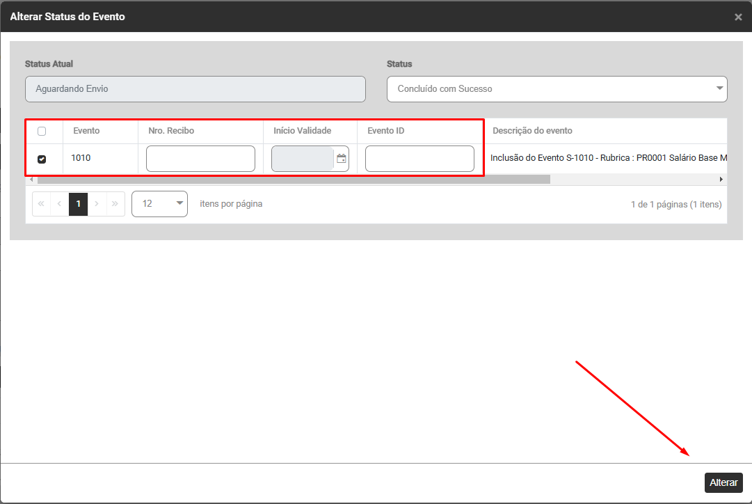Selecione o evento que foi rejeitado e clique no botão Alterar Status do Evento