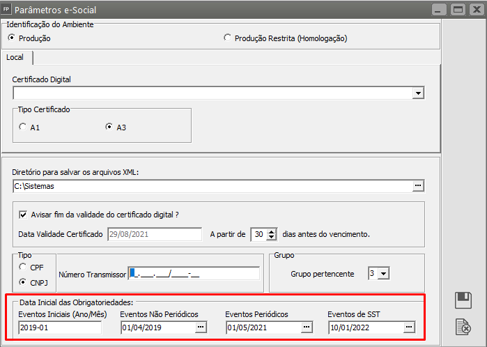 Ação Sugerida: Conferência da data de Obrigatoriedade