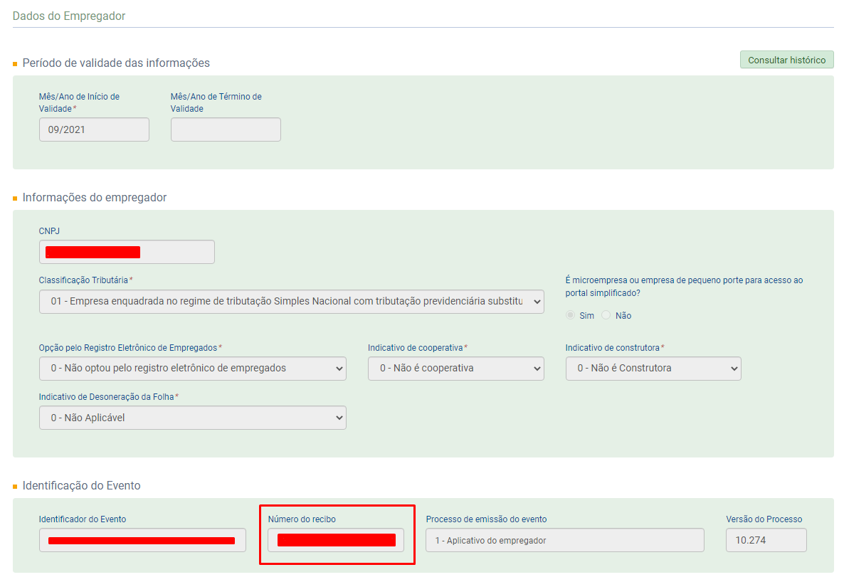 SOLUÇÃO: Acessar o Portal do eSocial no menu Empregador/Contribuinte - Dados do Empregador/Contribuinte