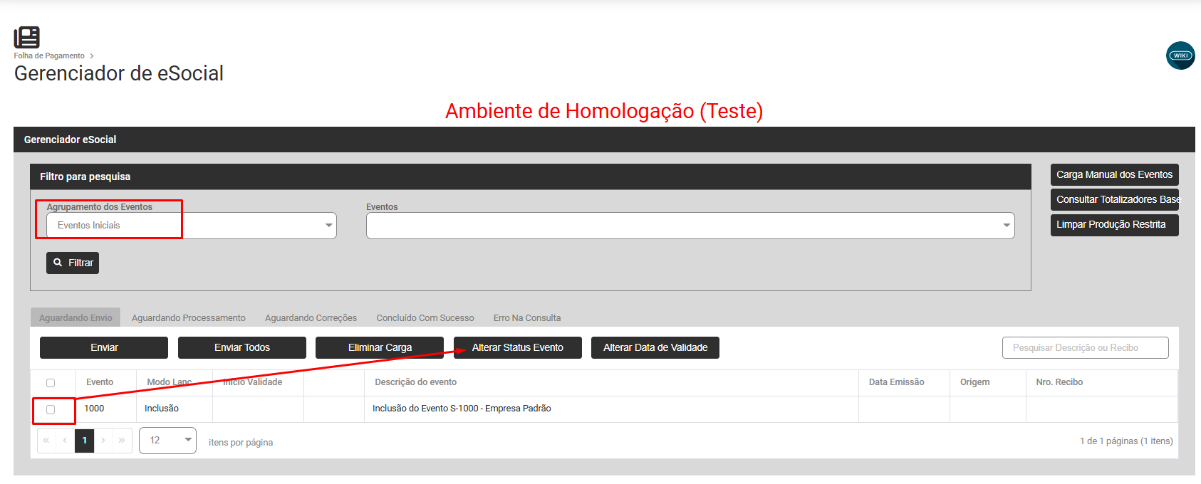 Filtre por Eventos Iniciais>S1000 e clique em Alterar Status do Evento