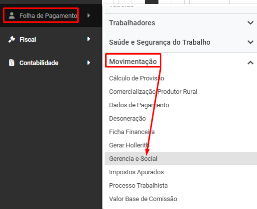 Após a realização das correções envie novamente o evento para o Portal do eSocial através do menu Folha de Pagamento>Movimentação>Gerencia eSocial