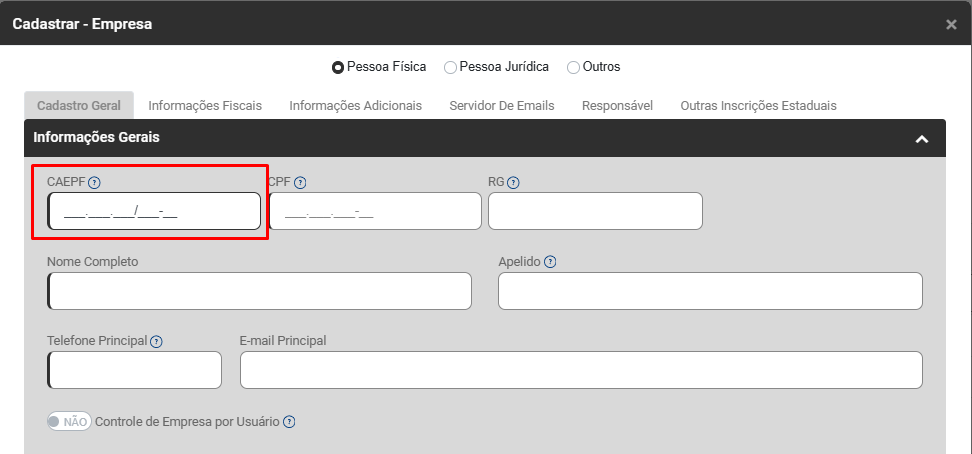 Descrição: “O tipo de CAEPF informado está diferente do valor encontrado no Sistema CAEPF” efetue a regularização