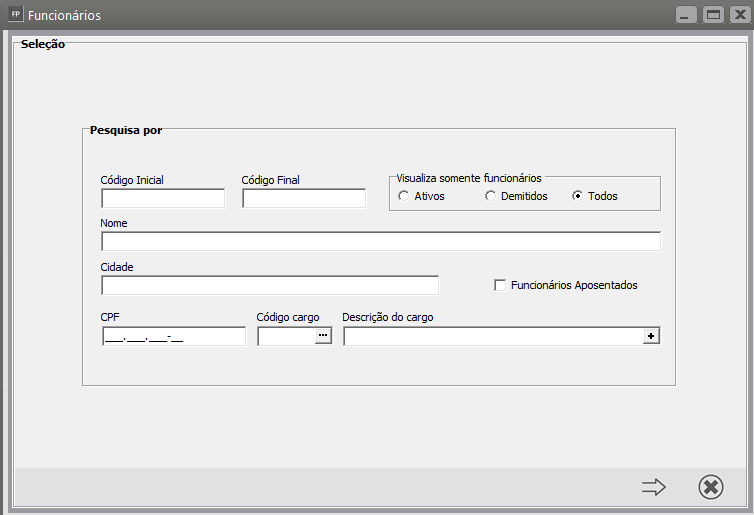 Correção: Acesse o menu Manutenção > Funcionários > Manutenção de Funcionários > Manutenção, pesquise pelo funcionário e clique na seta Avança.