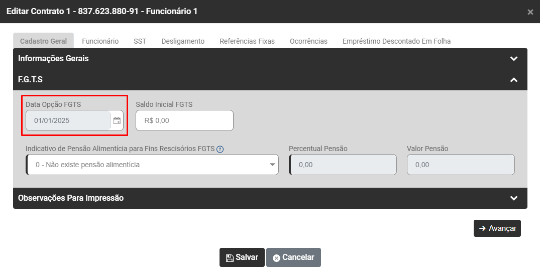 Observação: Após essa data, a opção ao FGTS é na mesma data de Admissão do Funcionário