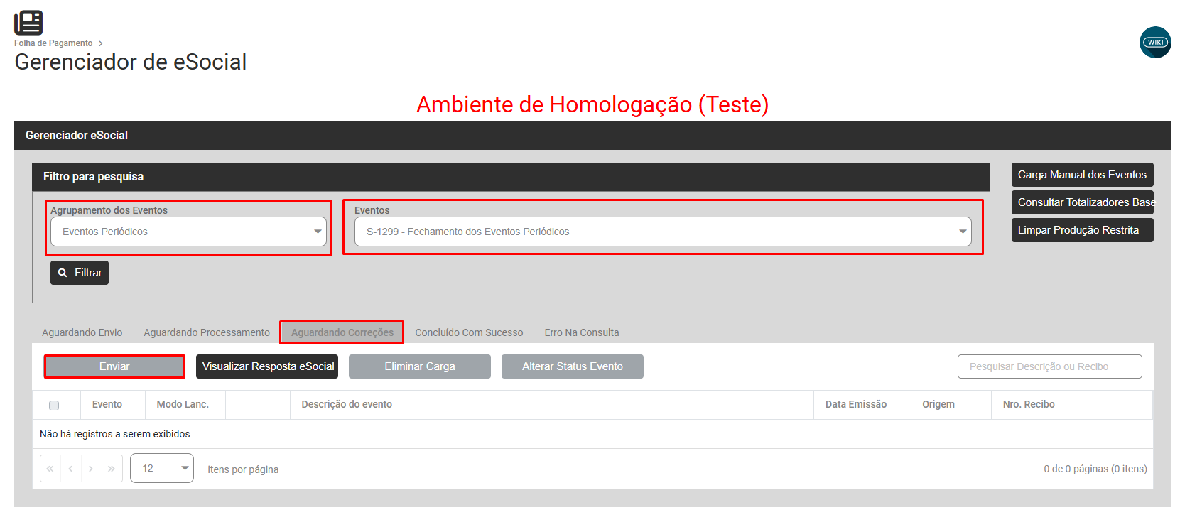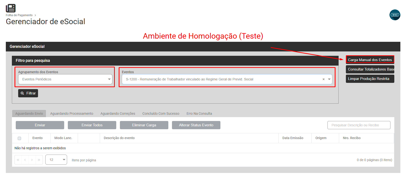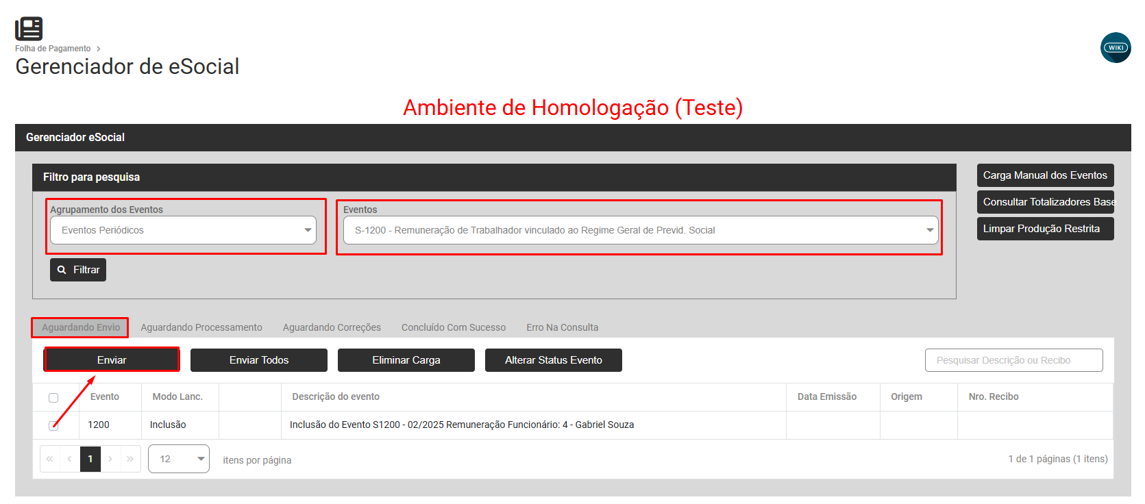Faça o envio da carga gerada para o eSocial