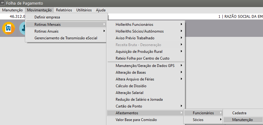 Correção: Acesse o menu Movimentação > Rotinas Mensais > Afastamentos > Funcionários > Manutenção, filtre pelo código do funcionário e clique na seta Avança.