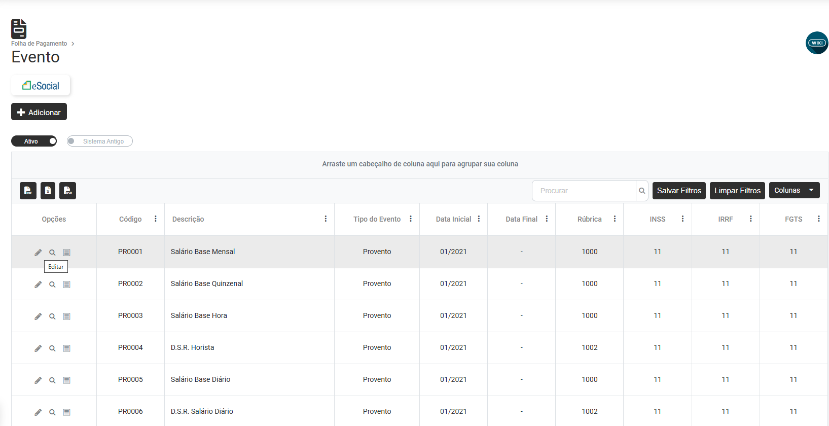 Ação Sugerida: Utilize somente rubricas cujo código de incidência do FGTS seja compatível com evento de remuneração (código de incidência do FGTS diferente de 21).