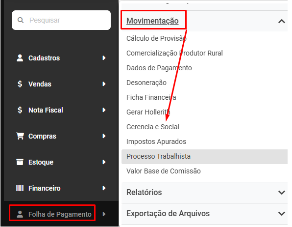 Para isso acesse o menu Folha de Pagamento>Movimentação>Gerencia eSocial