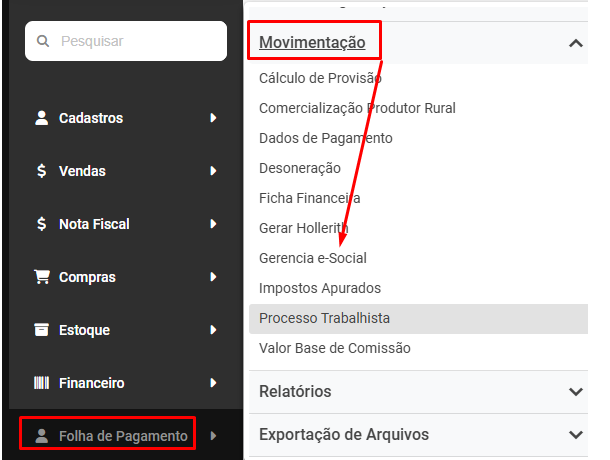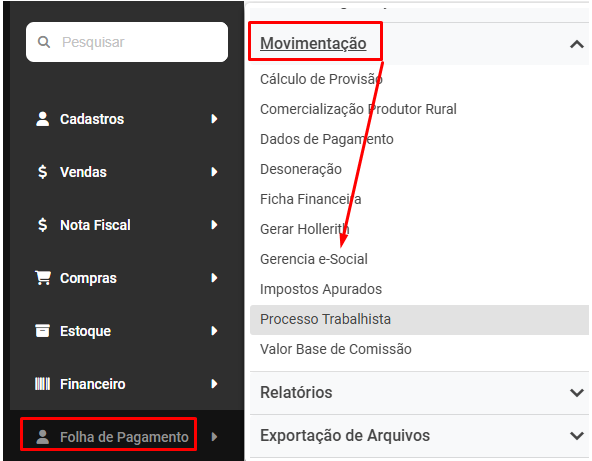 Para isso acesse Folha de Pagamento>Movimentação>Gerencia eSocial