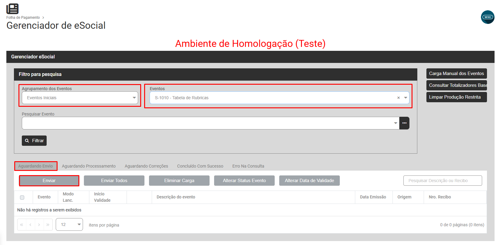 Depois de corrigir o evento, e enviar o s1010 de alteração se necessário, envie novamente a carga do s1210 que está com o status ‘Aguardando Correção’