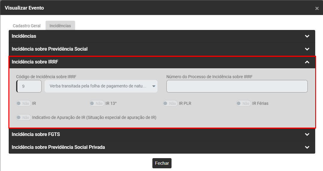 Acesse a aba Incidências e faça a conferência do campo Incidência sobre IRRF