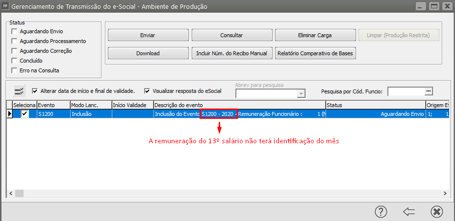 A carga do evento só poderá ser enviada para o portal do eSocial no mês de Dezembro do ano de referência