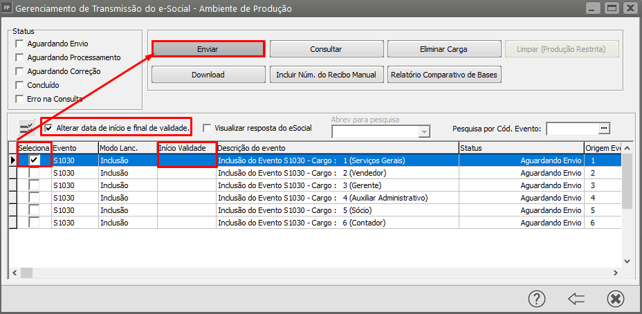 Feito isso, envie a carga do evento s1030 novamente, se atentando a indicar a data da obrigatoriedade correta no início da validade e NÃO preencher a data de término da validade.
