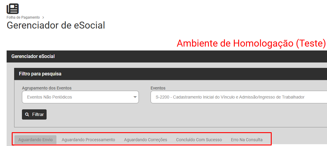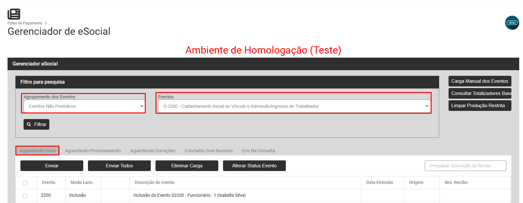 d) Depois de deixar o funcionário ativo, envie novamente o s1200 que está com o status ‘Aguardando Correção’.