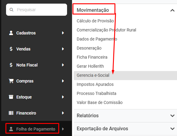 Como corrigir: Acesse o menu Folha de Pagamento>Movimentação>Gerencia eSocial