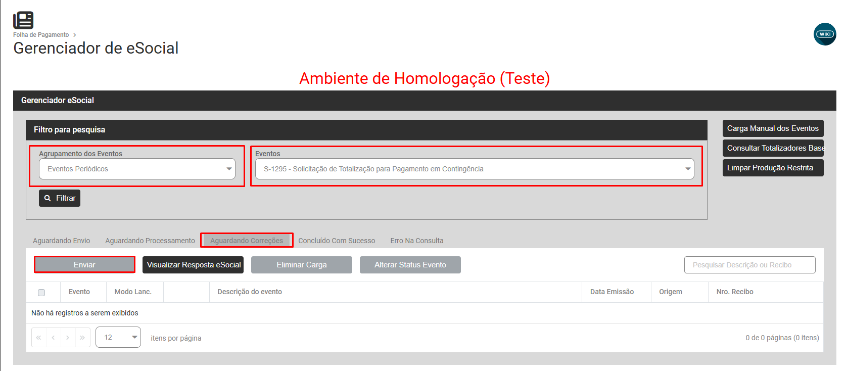 Correção: A rejeição acontece quando já foi enviado um evento S-1295 (Solicitação de Totalização para Pagamento em contingência) para o Portal do eSocial e você está tentando realizar um segundo envio.