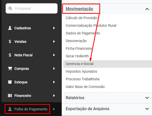 Acesse Folha de Pagamento>Movimentação>Gerencia eSocial