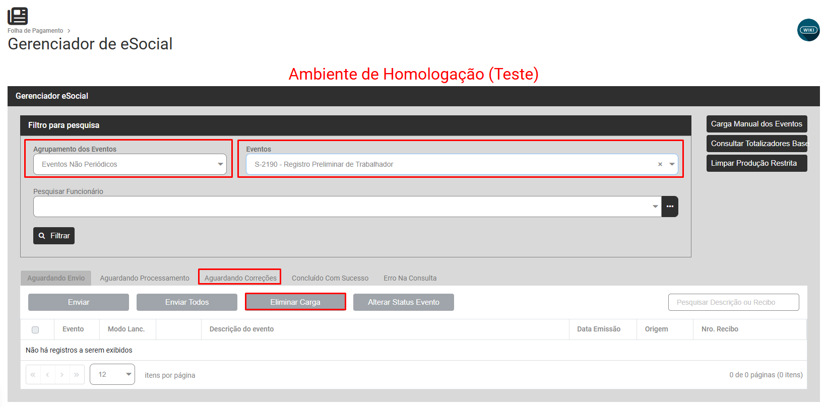 a) Se a carga estiver com Status Aguardando Processamento faça a consulta da mesma para verificar se ela será aceita ou não pelo Portal do eSocial.