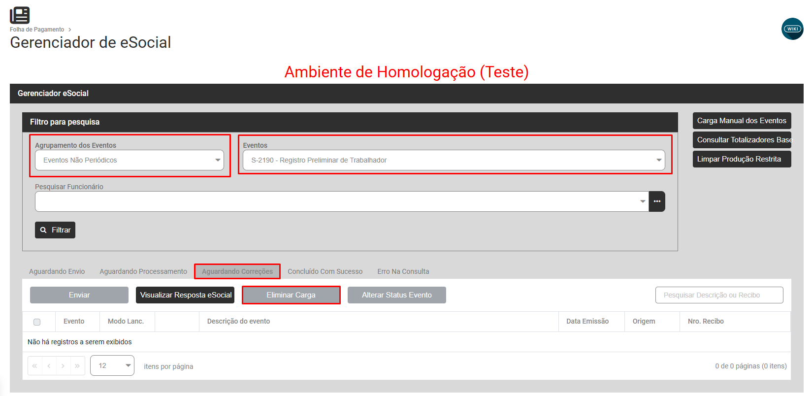 Em seguida exclua a carga S2190 que foi rejeitada pelo Portal do eSocial