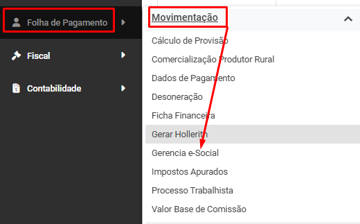 2. Após a correção, acesse o Gerenciamento dode e-Social no menu Movimentação e envie novamente o evento.