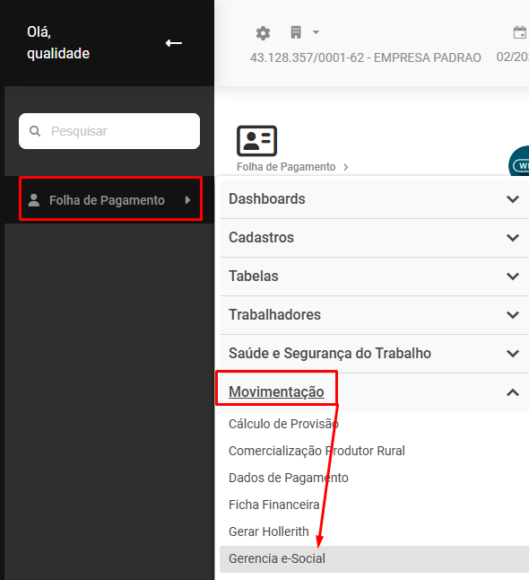 Em seguida acesse o Sistema Folha de Pagamento>Movimentação>Gerencia eSocial