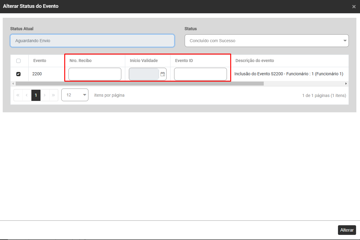 Pesquise por Eventos Não Periódicos - S2200 e verifique se o mesmo está com Status Concluído com Sucesso