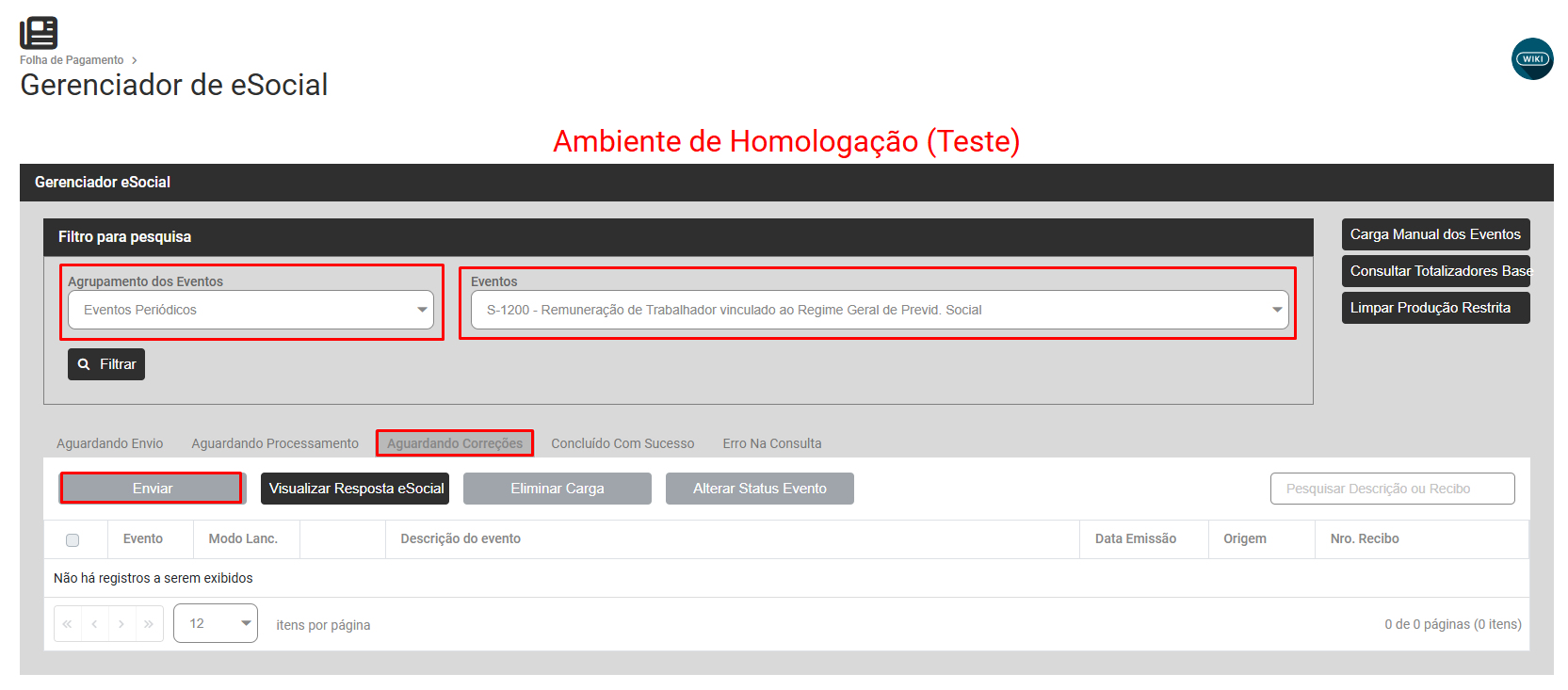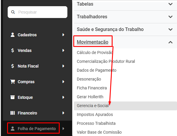 Em seguida será necessário reenviar o evento S1010 para o Portal do eSocial através do menu Folha de Pagamento>Movimentação>Gerencia eSocial