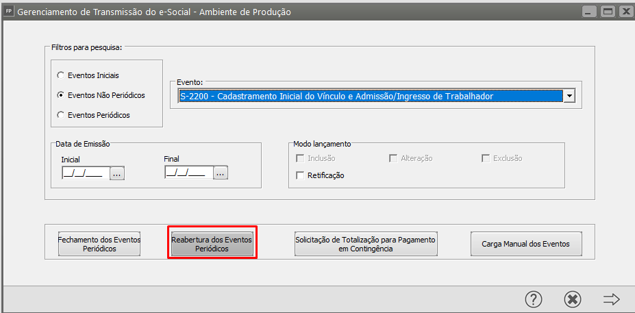 Será apresentada a mensagem informando que a carga de reabertura dos eventos periódicos foi gerada
