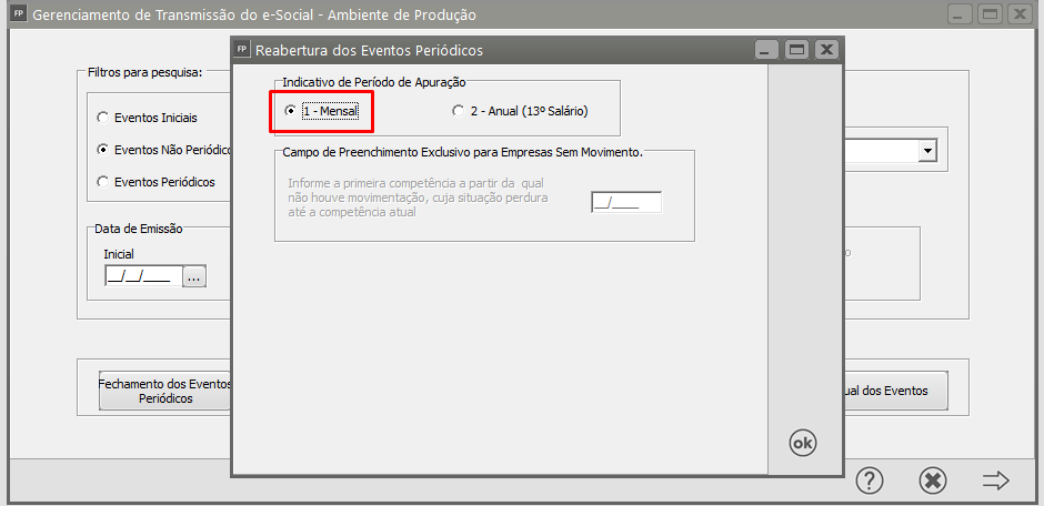 Clique no Indicativo de Período de Apuração e em seguida clique em OK
