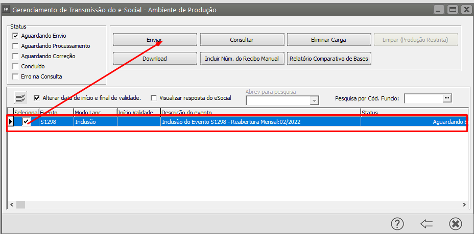 Faça o envio da carga de Reabertura para o Portal do eSocial