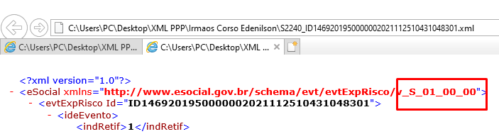 - 22 (Segurado Especial) os Eventos Periódicos só poderão ser enviados com XML na Versão 1.0, acesse o diretório onde você salva os XMLs gerados e abra o XML com Internet Explorer, veja se na parte superior do XML está indicando que o mesmo foi gerado na versão 1.0
