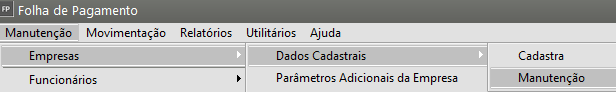 Correção: Acesse o menu Manutenção > Empresas > Dados Cadastrais > Manutenção