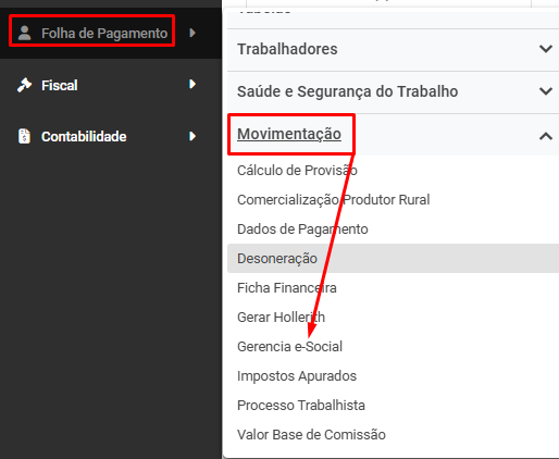 2. Acesse novamente o menu Movimentação > Gerenciamento de Transmissão eSocial.
